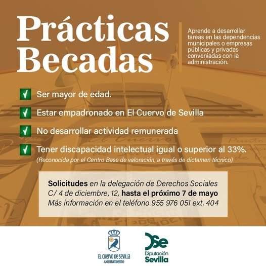 El Ayuntamiento de El Cuervo de Sevilla, en colaboración con la Diputación de Sevilla, ha abierto el plazo de inscripción para su nuevo programa de Prácticas Be…