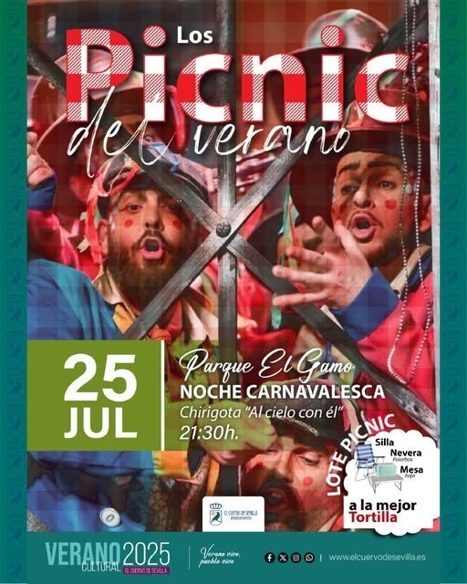 El Ayuntamiento de El Cuervo de Sevilla ha confirmado la actuación de la chirigota ecijana “Al cielo con él” el próximo jueves 25 de julio a las 21:30 horas, en…