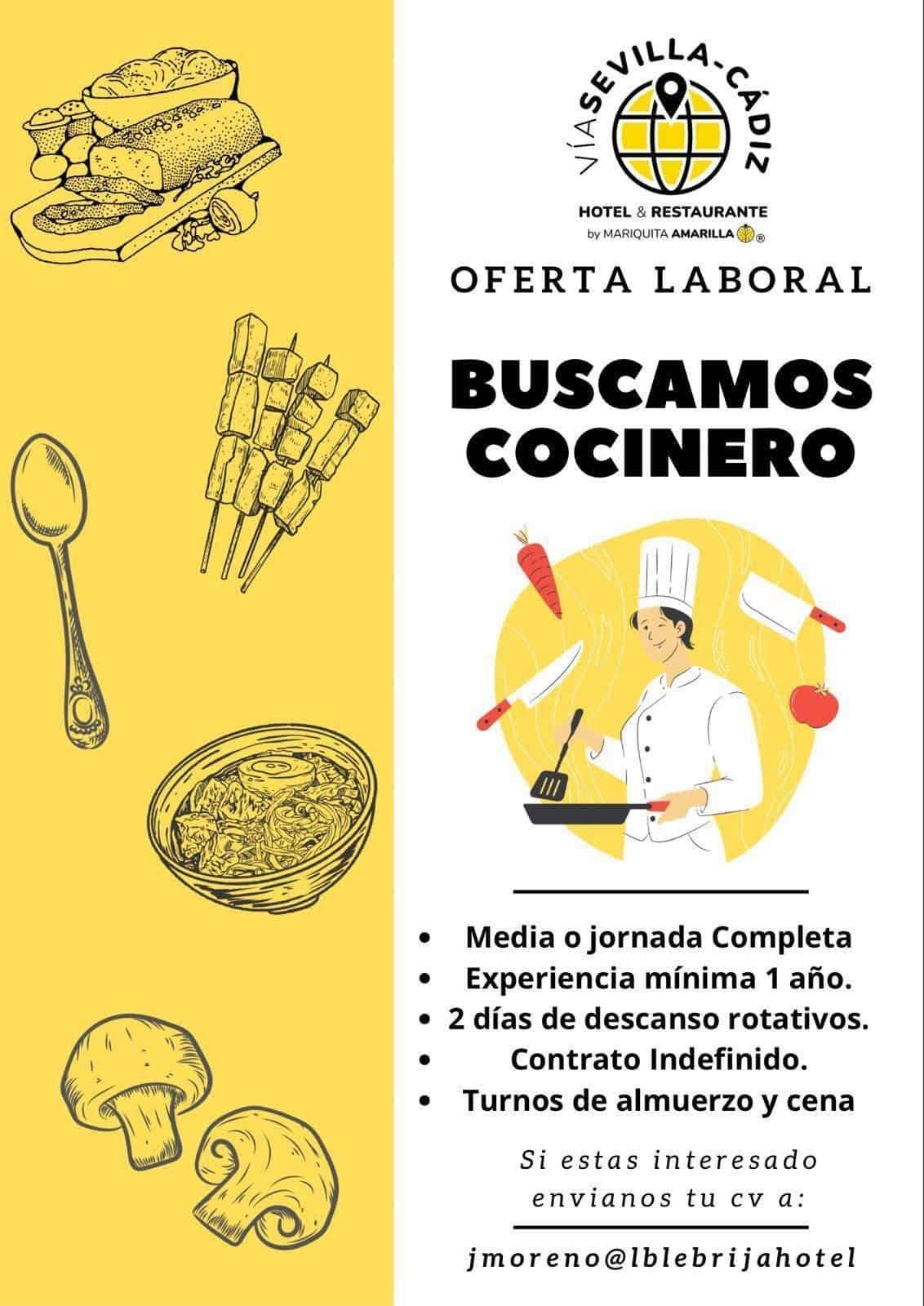El Hotel y Restaurante Vía Sevilla-Cádiz, gestionado por Mariquita Amarilla, ha publicado una oferta laboral para cubrir un puesto de cocinero. Se requiere una …