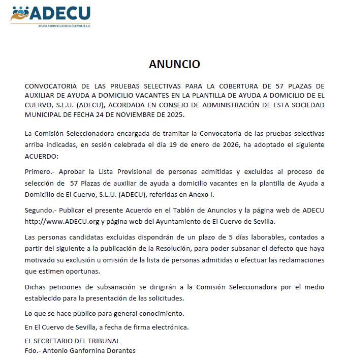 El Ayuntamiento de El Cuervo de Sevilla ha anunciado la activación de un nuevo programa de empleo juvenil que permitirá la contratación de 16 personas del municipio con edades comprendidas entre los 18 y los 29 años. La iniciativa se desarrolla en el marco de una subvención concedida por la Junta de