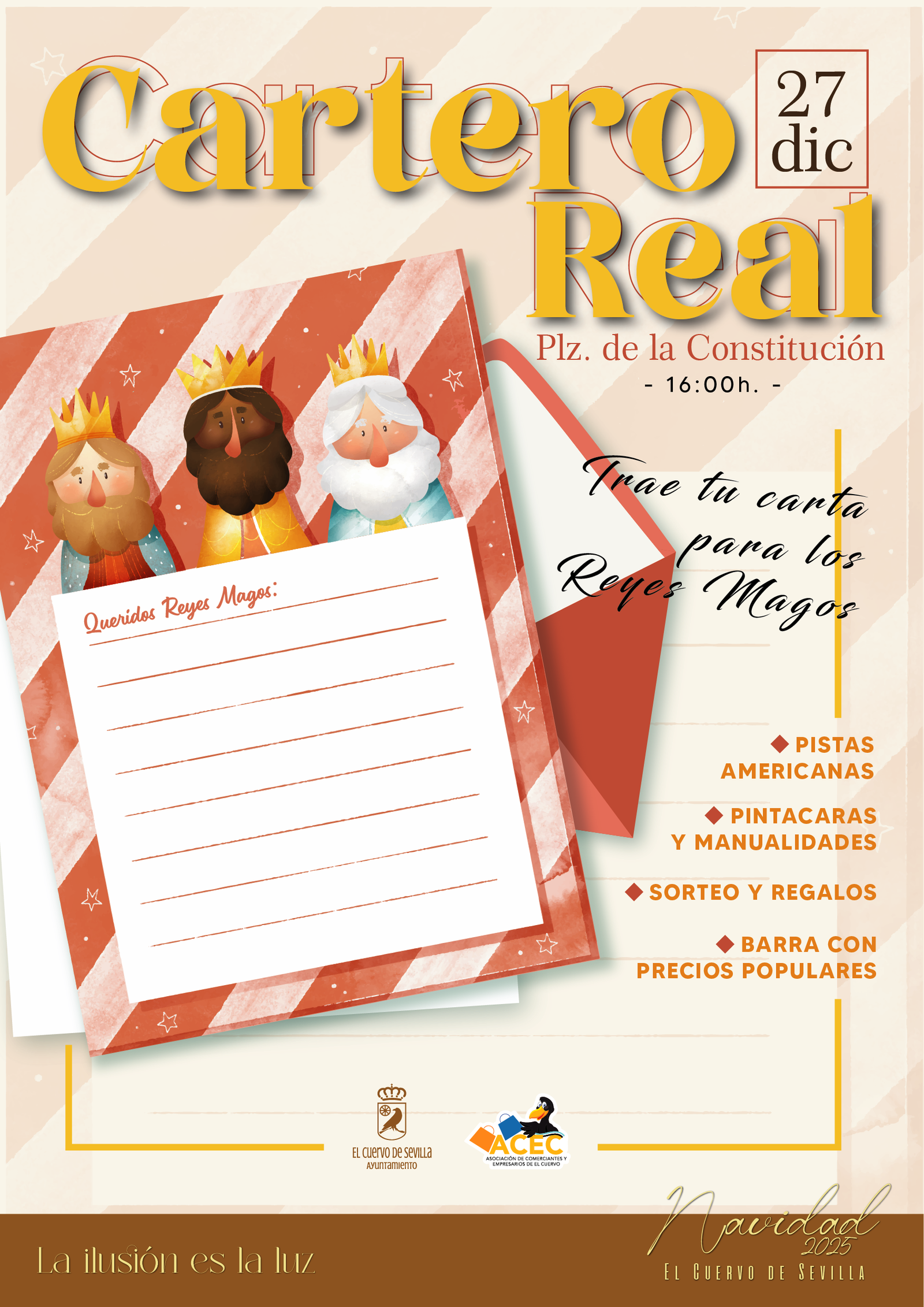 El Ayuntamiento de El Cuervo de Sevilla, en colaboración con la Asociación de Comerciantes del municipio, ha organizado una actividad dirigida al público infantil con motivo del Día de Andalucía. La iniciativa se desarrollará el próximo 28 de febrero en la Plaza de la Constitución y comenzará a partir de las 13:00 horas.